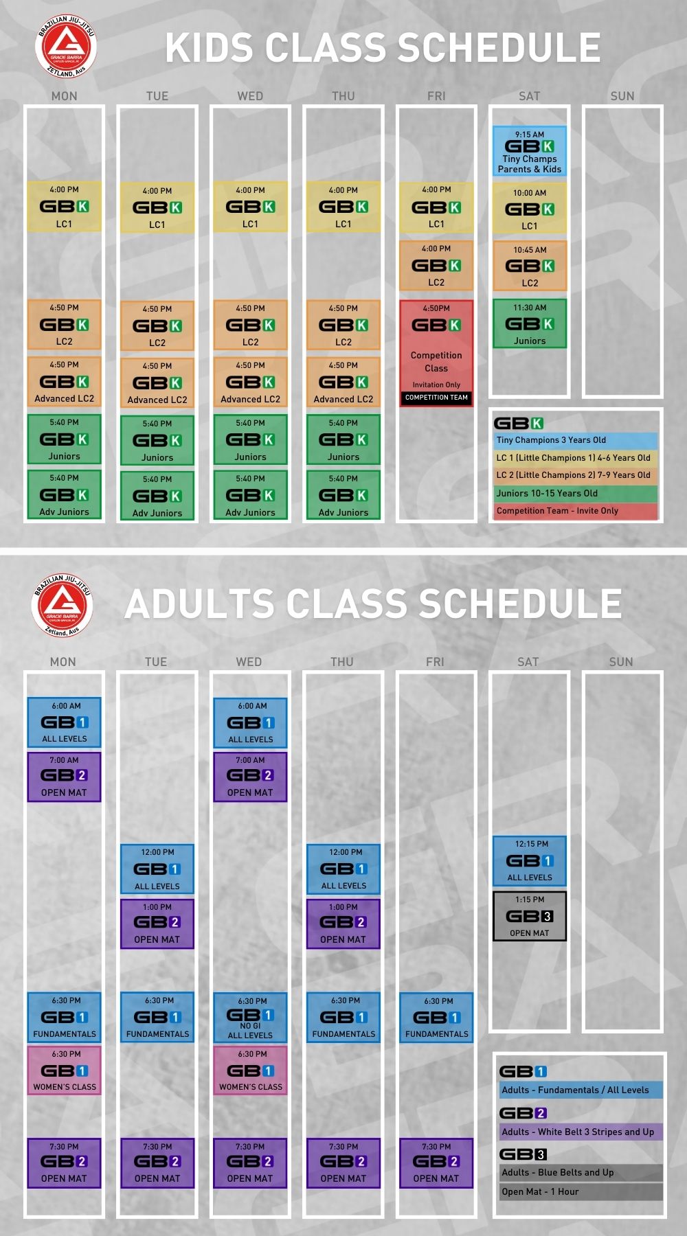 GB2 (Advanced Jiu-Jitsu) builds on fundamentals with complex drills and No-Gi training.